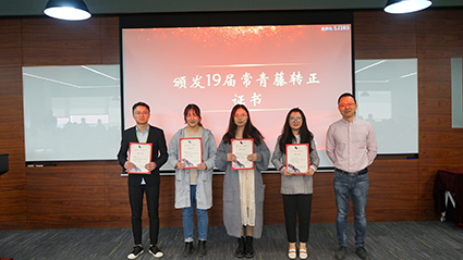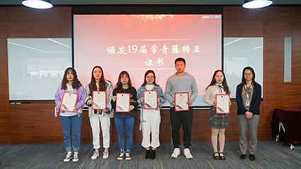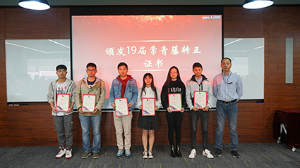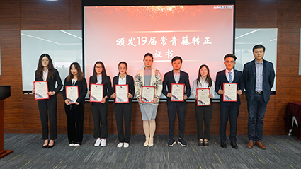 在授证及颁奖环节,,,,,,,,各辖档挽导陆续上台为19届常青藤学员揭晓转正证书,,,,,,,,并为18届优异小我私家揭晓奖状及“一年轻”徽章。。。。。。。副总司理张翎亲自为16届学员揭晓“3年香”纪念牌,,,,,,,,寓意三年生长,,,,,,,,如花绽放,,,,,,,,硕果芳香。。。。。。。至此,,,,,,,,三年期满,,,,,,,,16届“时间胶囊”正式开罐。。。。。。。